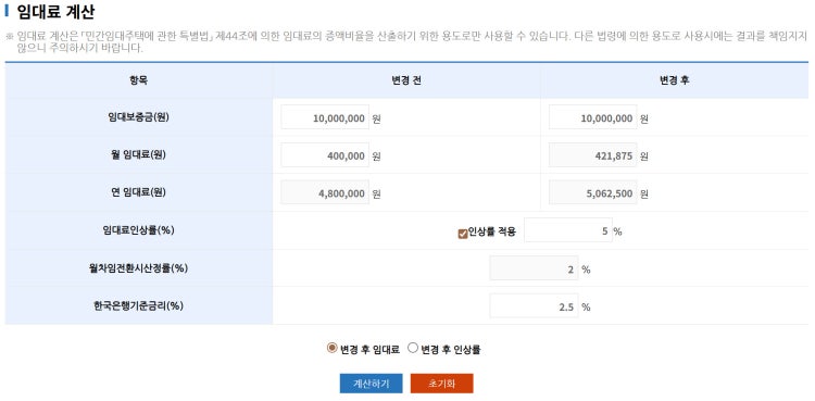 5% 임대료 인상을 하면 월차임을 얼마 받을수 있나요?